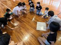 2年生は体育科で「ボールゲーム」をしています。最初はボールの投げ方について練習しました。的当てや壁の点数カードにボールを当てながらボールを狙ったところに当てられるようにし、友達とのパスを通してキャッチすることも頑張っています。攻めと守りに分かれて、円の中にある的を倒す2対2のゲームもしました。なかなか難しく、どこで守るのか、どんな動きで攻めるのか作戦会議をしながら進めています。来週はさらにレベルアップしたゲームをして仕上げです。ボールの使い方も上手になっているのでとても楽しみです。