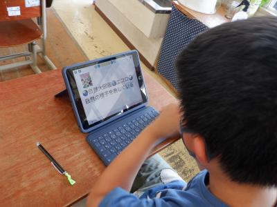 そこで、4年生は学級活動で自分が最近読んだ本の中からおすすめの1冊を紹介しました。タブレットを使って、表紙の写真を撮り、題名や感想、おすすめポイントなどをテキストに記入して紹介ページを作っていきます。初めての作業でしたが、自分で好きな文字や色を選びながらスムーズに作ることができました。