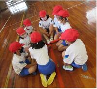 赤チームと白チームに分かれてリレー遊びに取り組みました。どうやったらより速くバトンをつなげるかという話し合いでは、「バトンを落とさないように丁寧に受け取ろう!」「はい!って声を出したらいいんじゃないかな。」という考えが出て、工夫をしながらバトンを繋ぎました。応援のとても上手な子どもたちでした。