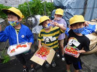 今年も市岡さんのご厚意で全校児童いちご狩りを体験させていただきました。
