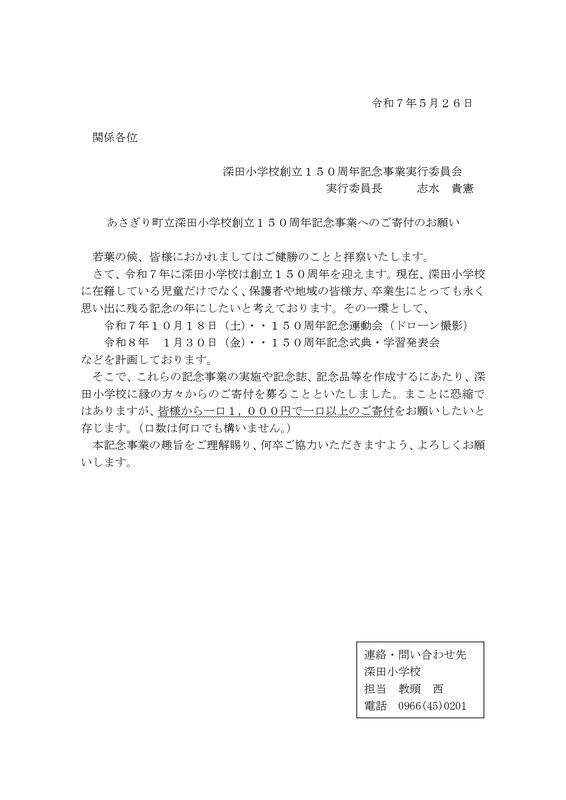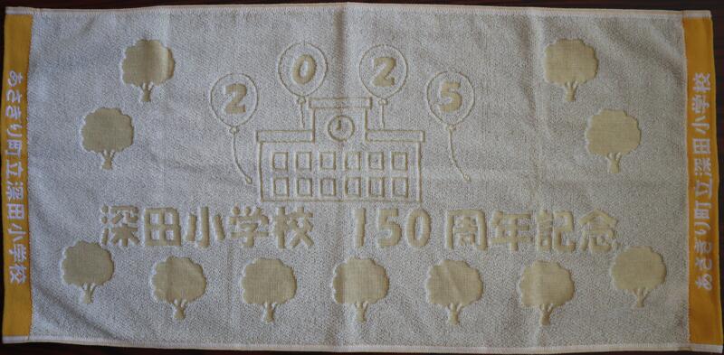 深田小学校の150周年記念をお知らせするのぼり旗ができてきました。早速、学校の周りに立てています。これから深田校区内に順次、旗を立てていきます。
