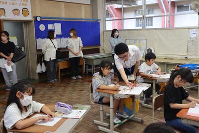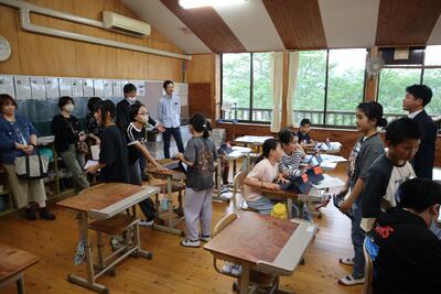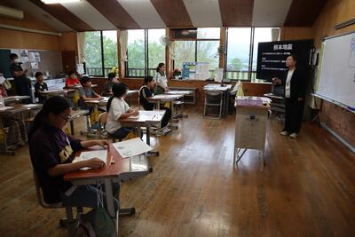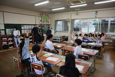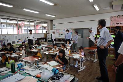 夏休み中に取り組んだ「税の作品(習字)」で本校児童があさぎり町長賞に選ばれたので、北口町長様から直々に表彰されました。緊張した面持ちでしたが、質問にもはきはきと答えていました。作品の字と同じで堂々とした感じでした。
