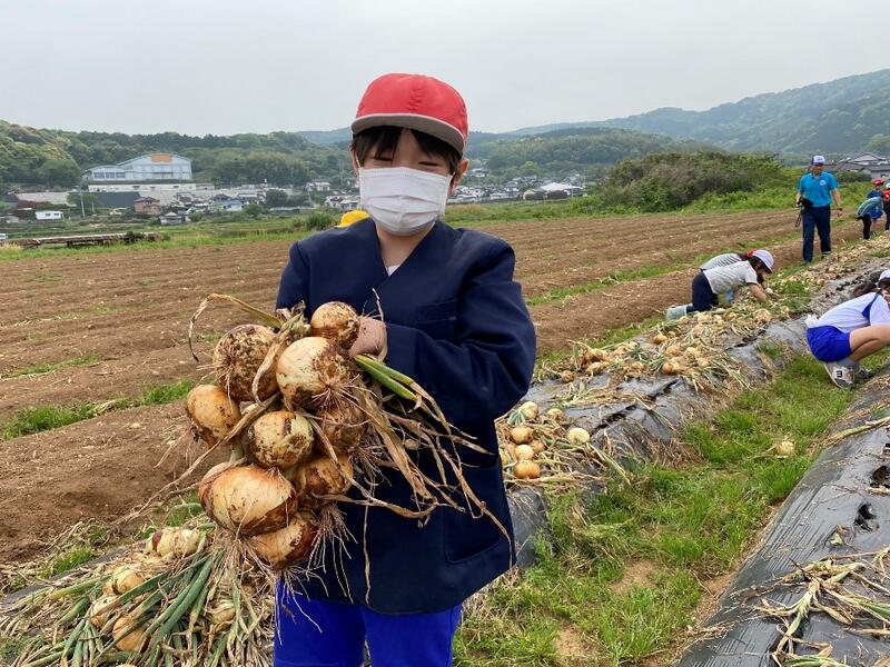 昨年度苗を植えたサラダ玉ねぎを、4月19日に収穫しました。収穫まで田畑さんを中心にJAの方々にご協力いただきました。大きな玉ねぎや形が美しい玉ねぎを見つけて大喜びの子供たちでした。JAの皆様、本当にありがとうございました。