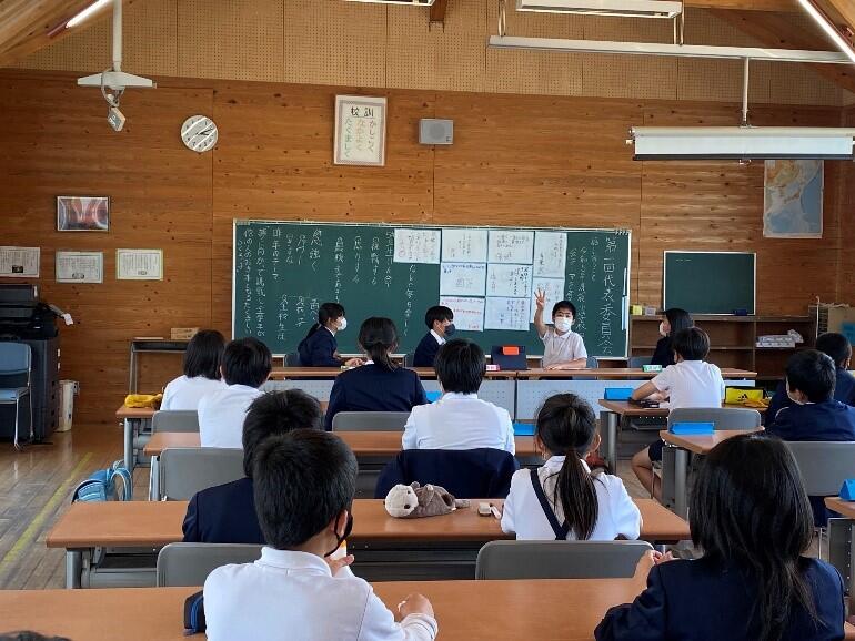 各クラスでの話し合いを基にした代表委員会が5月15日(月)に行われました。各委員会の代表での話し合いを経て、今年度の袋小学校児童会テーマが決まりました。