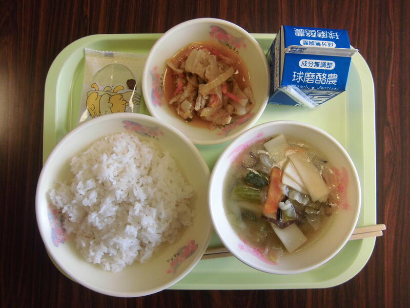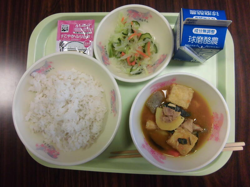 メニュー:とり飯(ごはん、とり飯の具)、だご汁、はるか、牛乳