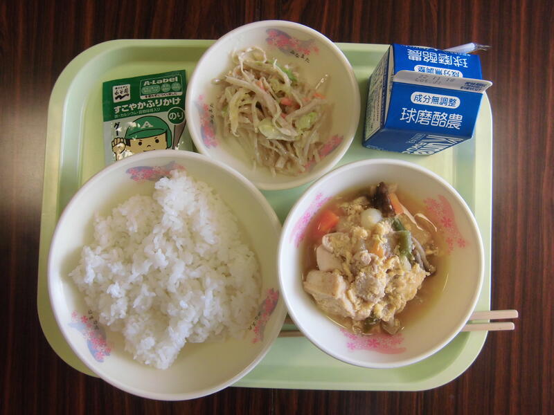 わかたまスープは、わかめと卵がたっぷり入った中華風のスープでした。ホイコーローは、「いただきます」の前に減らしている子供がいました。一人の子供は「肉が嫌いだから」と言っていました。逆に、「おいしそう」といって、たくさん増やしている子供や「おかわり」をする子供もいました。
