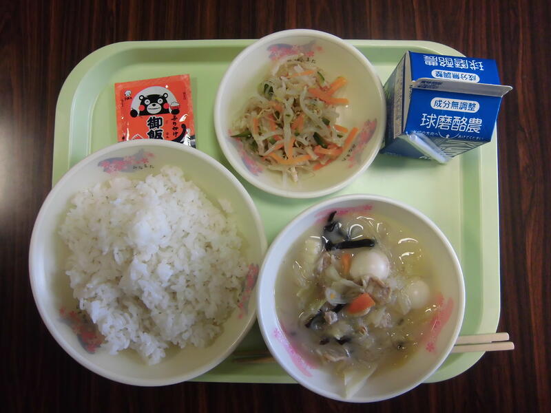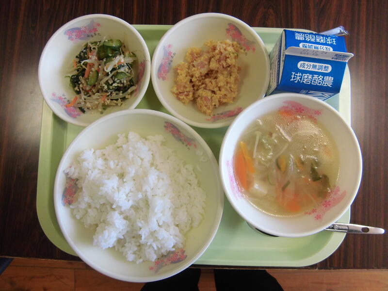 「タイピーエンのうずらの卵を増やしました」という子供がいました。やはり、卵を楽しみにしている子供が多いんだなぁと思いました。「ご飯の友」も喜んでいました。「ご飯の友」は、低学年では、混ぜて食べる子供が多く、高学年では、混ぜずにかけるだけの子供が多かったようです。どちらにしても、おいしそうに食べていました。