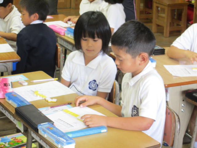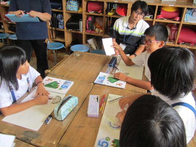 ひまわり3組では、複式授業で、友達や先生と考えを出し合っていました。