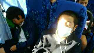 みんな、バスの中で楽しくおしゃべりしながら過ごしています。