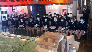 10:00~ 石匠館の中で館長さんのお話を聞いています。