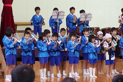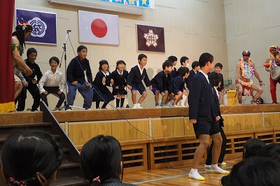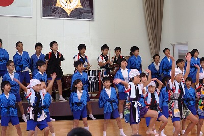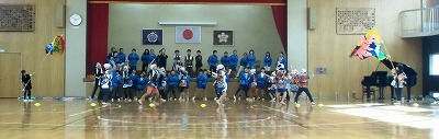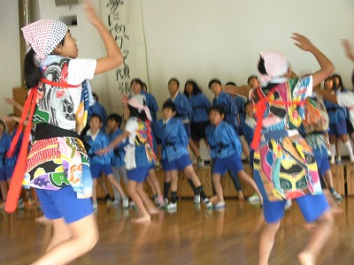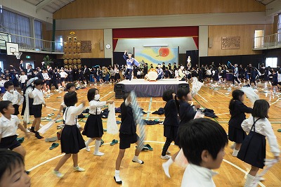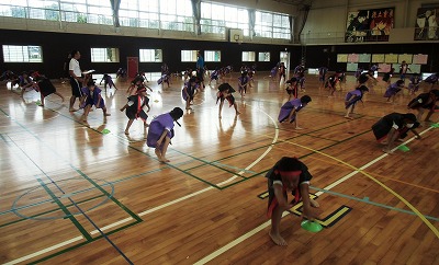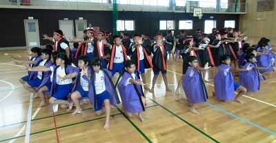 3・4年生は、1時間目にソーラン節の練習を行いました。