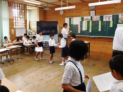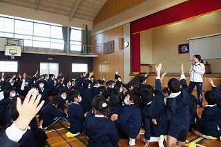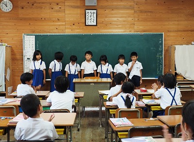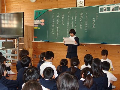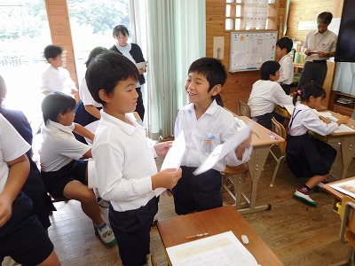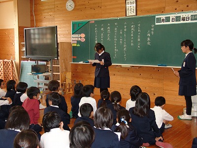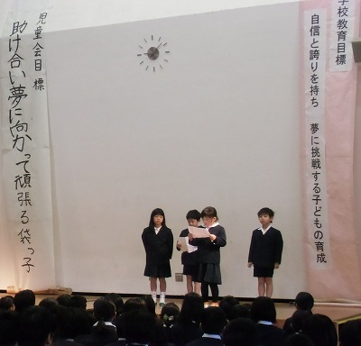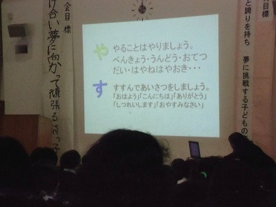 今、「あいさつ」「返事」「感謝」「プラス言葉」ということで、子どもたちに声かけを行っています。素直に努力する子ども達を見ると嬉しくなります。