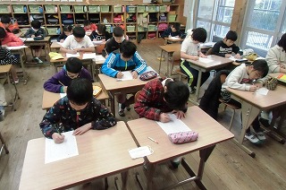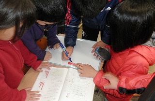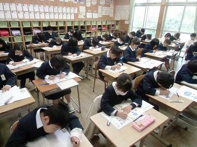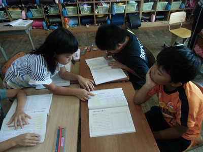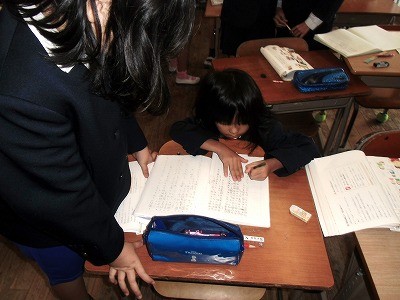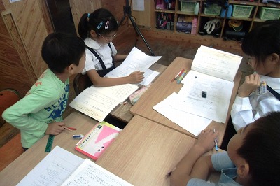 多くの子どもたちが、丸つけ終了後、すぐにプリント集を提出できました。