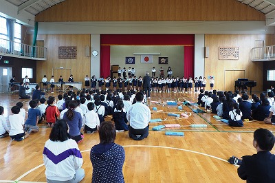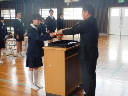 式では、まず、第6学年の教育課程の修了証を6年生の代表に渡しました。