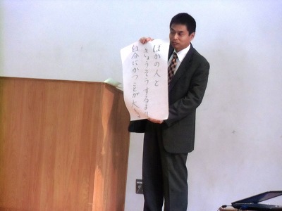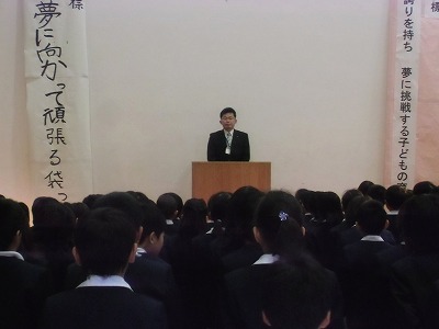話されました。みんな真剣な表情で食い入るように聞いていました。