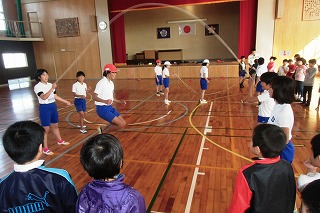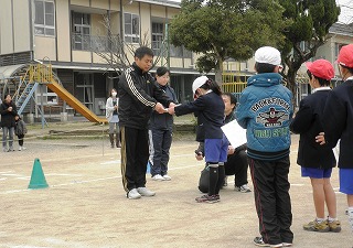 オリンピック選手の 斉藤仁志選手、江里口匡氏選手による陸上教室が行われました。熊本大学の陸上部のみなさんも手伝って下さいました。