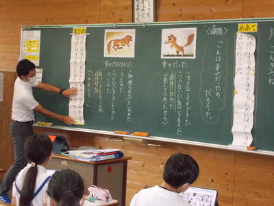 本校では、11月に図書館活用教育の研究発表を行います。その研究会に向け研究授業等を積み重ねていますが、8日に実施した。4年生の授業の様子を紹介します。「ごんぎつね」を題材にした物語文の授業でした。教室で行う授業と図書室をいかにつなげていくか、どう活用するかを意識して授業構成を行っています。また、児童一人一人がタブレットを使って、一人一人が考えたことの共有化を図るなどICTの活用の場も見ることもできました。