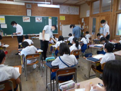 また、リン先生は、日本語を話すのも書くのもお上手で、児童と一緒に漢字の書き取りもしていただきました。たった1時間でしたが楽しく過ごすことができ、児童にとって貴重な時間になったようです。