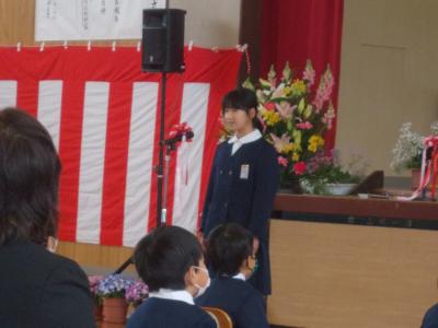 4月9日(金)は入学式でした。真新しい標準服に身を包んだ男子7名、女子15名、計22名の新入生は、本当に元気そうで今後が楽しみです。式の間もしっかりと話を聞いてくれ、「あいさつ」「話を聞く」「友達と仲良くする」と3つの約束をしましたが頑張ってくれると思います。式には、在校生は、参加できませんでしたが代表児童が「一緒に遊びましょう。わからないことは私たち6年生に聞いてください」と歓迎の言葉を話してくれました。1日も早く学校生活に慣れてくれればと思います。