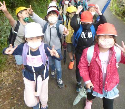 4月16日(金)は、歓迎遠足でした。まずは、体育館で歓迎の集会を行いました。1年生の氏名点呼の後、全校児童で青葉会が企画した〇✖クイズやジャンケン大会、先生クイズを楽しみました。その後、目的地のグリーンスポーツみなまたへ向かいました。中学校グランド前のみかん山を登り茂道に出るルートを通って向かいました。行きすがら、景色を楽しんだり、ふもとにいる人に手を振ったり、1年生の中には、到着するまで6年生としりとりをしながら歩いている子もいました。