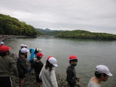 現地では、6年生が1年生にインタビューをしてみんなに紹介した後、楽しみの昼食。その後は、海べで石投げをしたり、散策したり、鬼ごっこをしたりと思い思いに楽しむことができたようです。