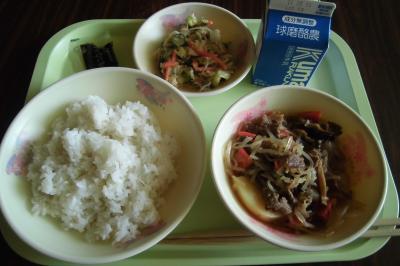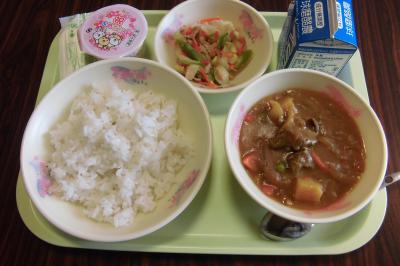 今日は、入学、進級おめでとうメニューでした。メインは、子どもたちの大好きなビーフカレー、1年生のほとんどの子が好きだと言っていました。家庭訪問中ではありますが、1年生も学校での生活に少しずつ慣れてきたようです。もう一つのお目当てはデザートのイチゴゼリー。みんなおいしかったと言ってくれました。
