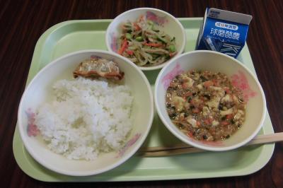 マーボー豆腐は、中華料理の一つです。ひき肉と豆腐を甘みそや辛みそなどで炒め煮したものです。小学生向けで辛みは抑えてありましたが、子どもたちは、パクパク食べていて、マーボー豆腐丼にして食べていた子もいました。中華サラダは少し酸っぱいと言っていた子もいましたがおいしいと言っていました。