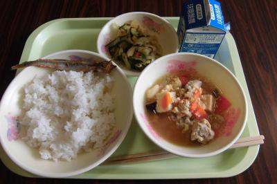 メニュー ごはん、おひめさんだんご汁、きんぴらごぼう、焼きのり、牛乳