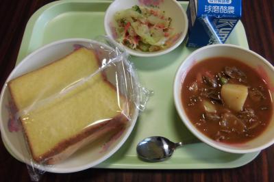 今日は、中学校3年生お祝いメニューです。水俣市内の中学校の卒業式は、14日日曜日ですが、中学校3年生の皆さんにとっては、今日が最後の給食です。今日のメインは、ビーフシチュー。栄養満点のおかずでした。
