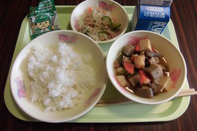 今日のメニューは、水俣二小のリクエストメニューでした。水俣市の特産物であるサラ玉やちりめんじゃこを使ったものでした。カレーには、サラ玉がたっぷり入っていて甘みとコクがありおいしかったです。