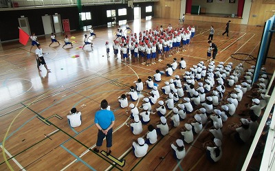 運動会に向け、運動場で活動したいところでしたが、あいにくの雨。