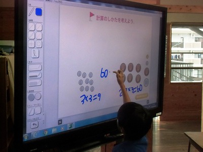 ◎ 3年生は、算数の時間、電子黒板を使った説明に挑戦しました。