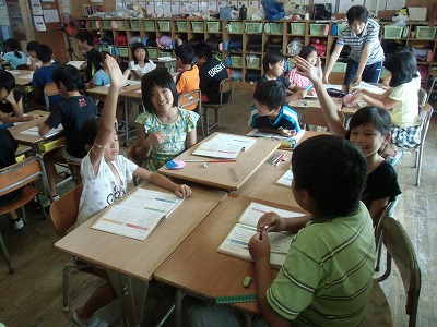 「誰か考えを黒板に書いて…」 「はい」「はい」「はい」