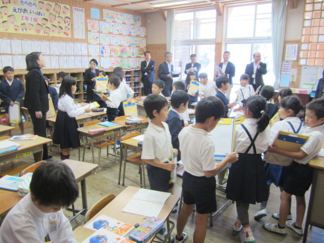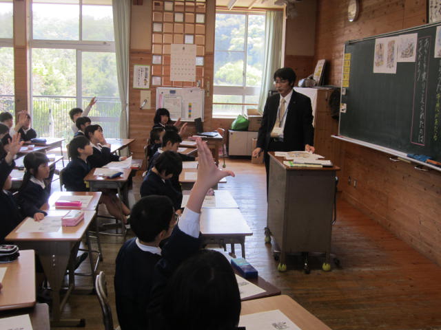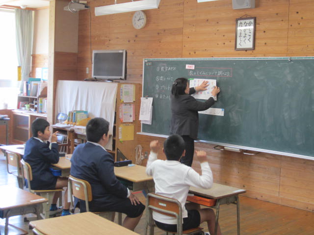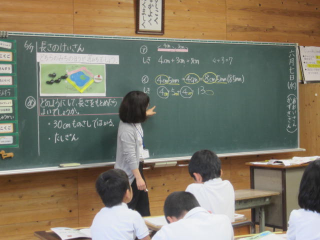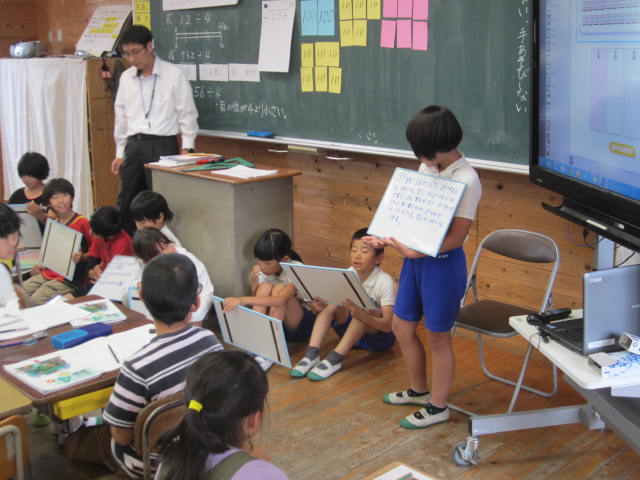 ひまわり3組では、複式授業で、友達や先生と考えを出し合っていました。