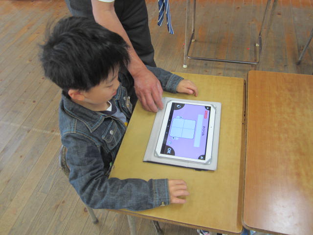 ひまわり1組では、タブレットを使って、ひらがなやカタカナの勉強