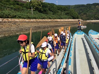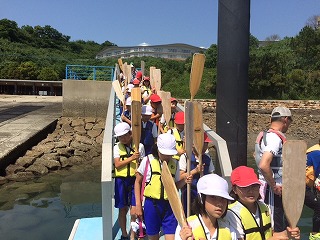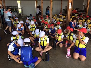 所員の先生方の説明を聞いた後ライフジャケットを着用。