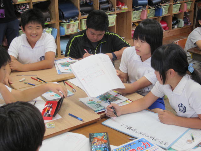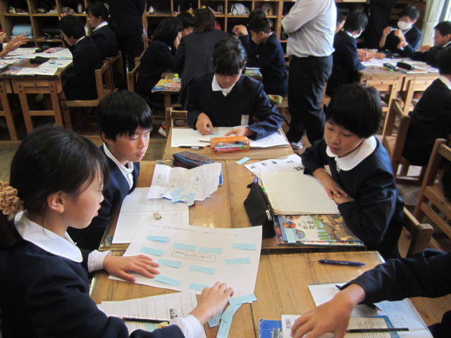 1年生は、自由対話で友達に自分の考えを伝えていました。