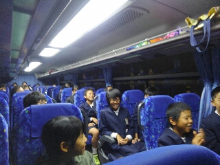 みんな、バスの中で楽しくおしゃべりしながら過ごしています。
