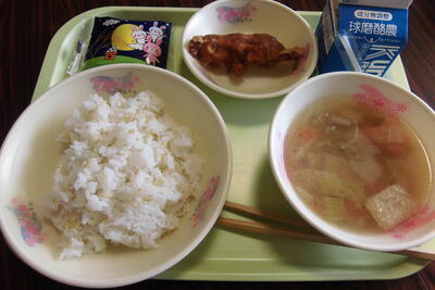 今日は、久しぶりのジューシーです。今週末や来週末には、市内の小学校で運動会があるからでしょうか?児童は、運動会の練習を頑張っているので牛乳とジューシーどちらも飲み干していました。ちなみに袋小は、10月2日土曜日に「袋っ子体育フェスティバル」を開催します。天気は良さそうですね。