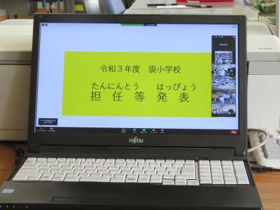 4月8日(木)いよいよ袋小学校の令和3年度がスタートしました。コロナ感染症拡大防止のため、就任式、始業式をリモートで行いました。就任式では、あらたに5名の先生方をお迎えし、青葉会の児童が歓迎の言葉を発表してくれました。始業式では、子どもたちの様子を画面を通して見ていたのですがしっかりと話を姿に子どもたちのやる気を感じたところです。一番盛り上がったのは、やはり担任発表の時で、担任の先生が決まりホッとしている子もいたようです。今年度も職員全員で子どもたちを見守り、指導してまいりますのでよろしくお願いします。