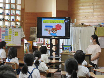 ※夏休みの生活面・健康面で注意してほしいことを担当の先生からパワーポイントを使って説明してもらいまし