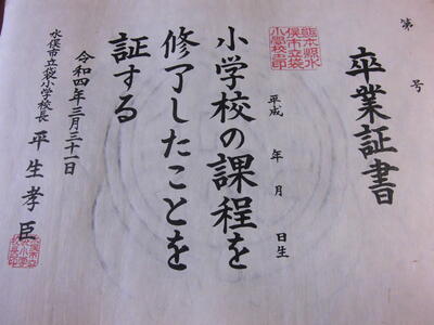 6年生の卒業証書づくりもいよいよ大詰めです。まずは、1月に皮むきした楮を煮て取り出した繊維とのりを一緒に水槽に入れかき混ぜます。この日の気温は低く水槽の中も水だったので繊維をかき混ぜる作業も大変でした。その後、金刺さんに漉き方を見せてもらい、いよいよ一人2回ずつ漉いていきました。その後、乾燥させ印刷して完成したのが一番下の写真です。自分で漉いた紙でできた卒業証書をもらう時の喜ぶ顔が浮かんできます。