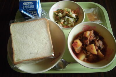 今日のメインは、牛肉のトマトソース煮、じゃがいも、玉ねぎと牛肉をトマトソースで煮込んだものです。学校給食のメニューも昔に比べると種類が増えましたね。今は、牛肉もよく使われるようになった食材ですが、たんぱく質が豊富で成長期の子どもたちにとって欠かせないものですよね。