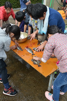 漁師さんが水俣湾で取ってきてくれた魚に触れ