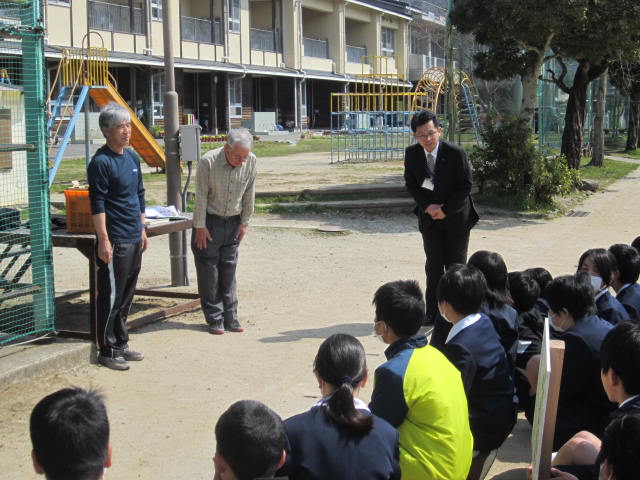 の木を卒業記念樹として体育館前の花壇に植樹をしました。5年後には