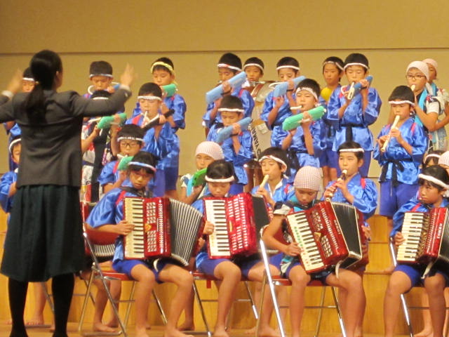 水俣市の小学校7校が市文化会館に集まりました。合唱、合奏、和太鼓