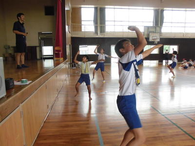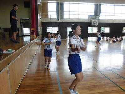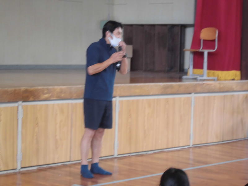 9月12日(土)、今日は土曜授業でした。例年、運動会では全校児童で「2001・水俣ハイヤ節」を披露していますが、今年の「袋っ子体育フェスティバル」でも全校児童の元気な姿を見て頂ければと練習を開始しました。今日は、茂道にお住いの杉本さんから「2001・水俣ハイヤ節」の歴史や込められた思いについてお話しいただきながら踊りのポイントの指導をいただきました。低・中・高に分かれ、しっかり練習に取り組みました。
