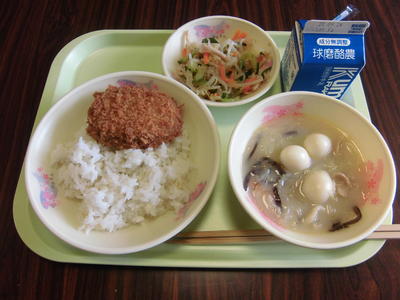 今日はふるさとくまさんデー「熊本市」メニューです。ご存じの方も多いと思いますが、タイピーエンは、熊本で誕生した中華料理と言われています。アヒルの卵の代わりにウズラの卵を入れた春雨スープで旬の野菜や豚肉、エビなどが入っていて栄養満点です。