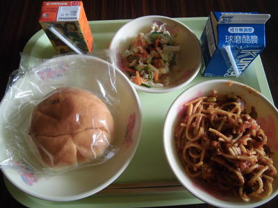 米粉パンは、給食では定番になってきましたね。米粉のもっちり感が好きな児童も多いようです。給食のスパゲティもけっこうおいしいと思います。児童にも人気です。