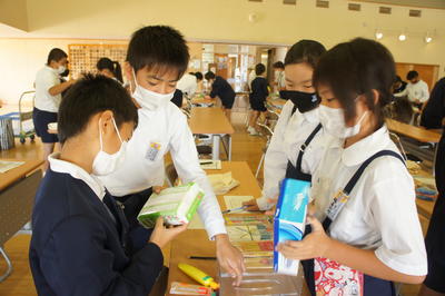 10月21日(水)、校内で水俣に学ぶ肥後っ子教室を行いました。熊本県環境センターの中村先生にお越しいただき、講話を聴いたり、エコショッピングとUVビーズ作りを体験したりしました。地球を守るために自分たちにできることを真剣に考える時間となりました。